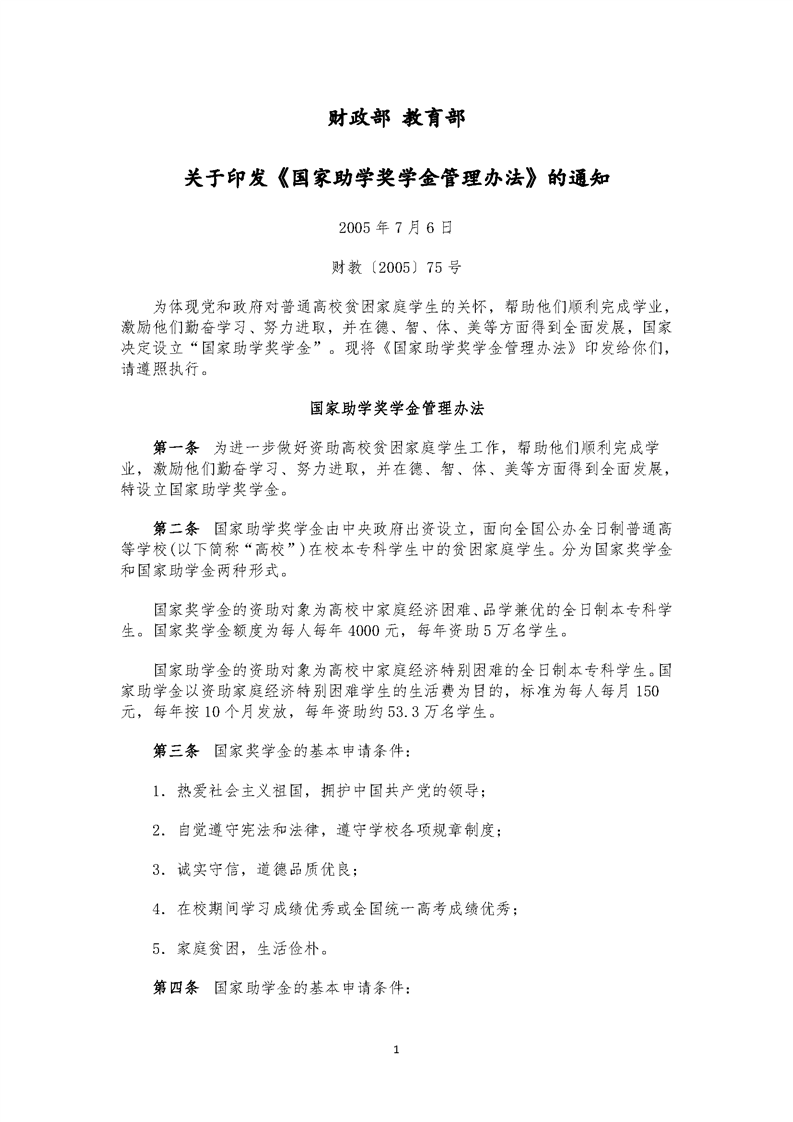 《国家助学奖学金管理办法》