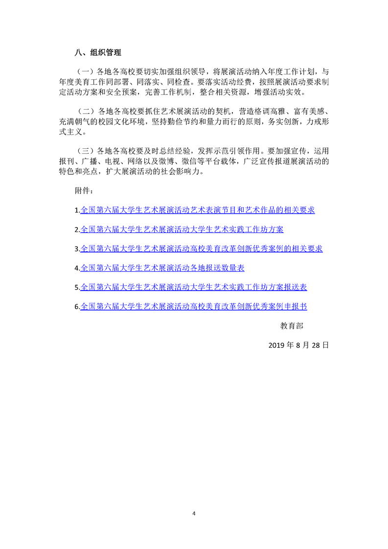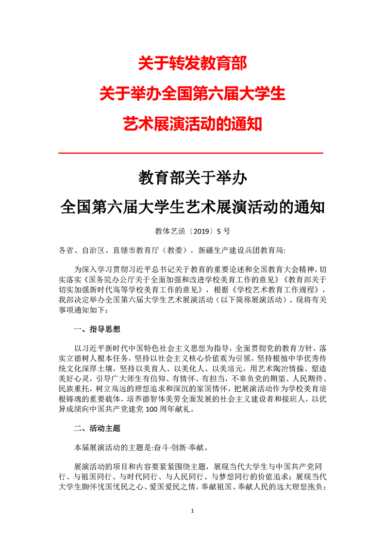 关于转发教育部关于举办全国第六届大学生艺术展演活动的通知