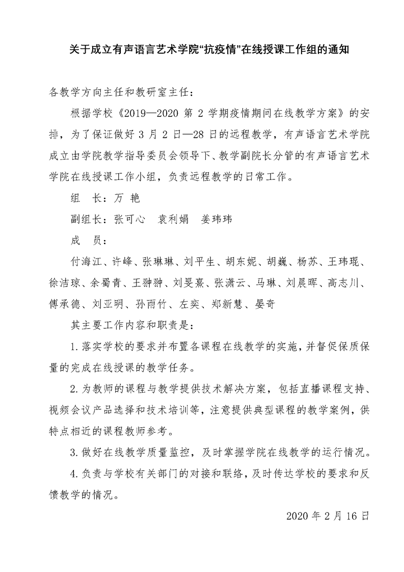 我院在线授课工作小组构成及职责