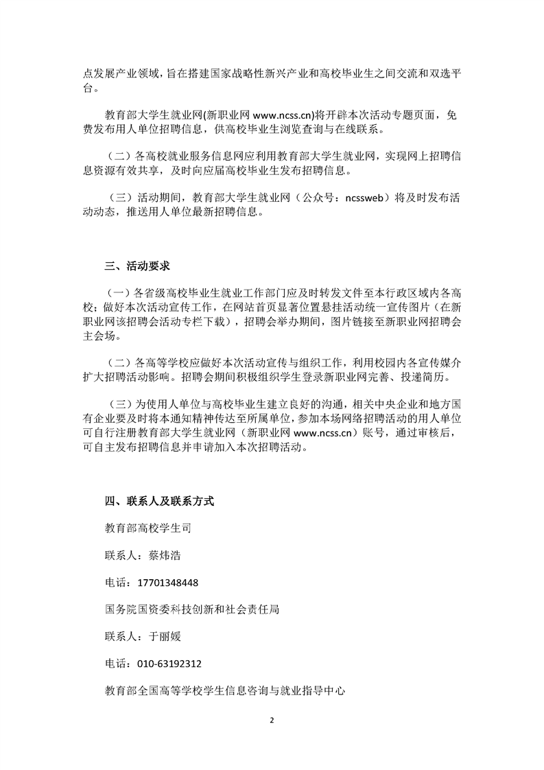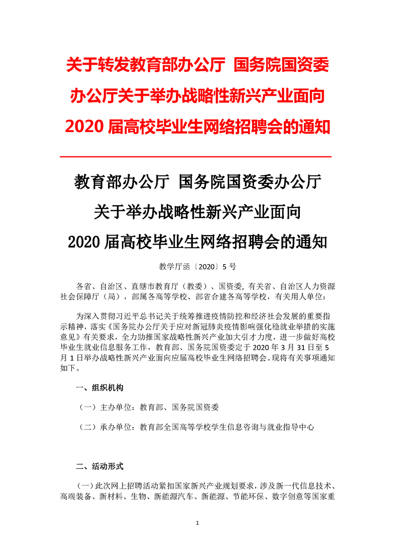 关于转发教育部办公厅 国务院国资委办公厅关于举办战略性新兴产业面向2020届高校毕业生网络招聘会的通知