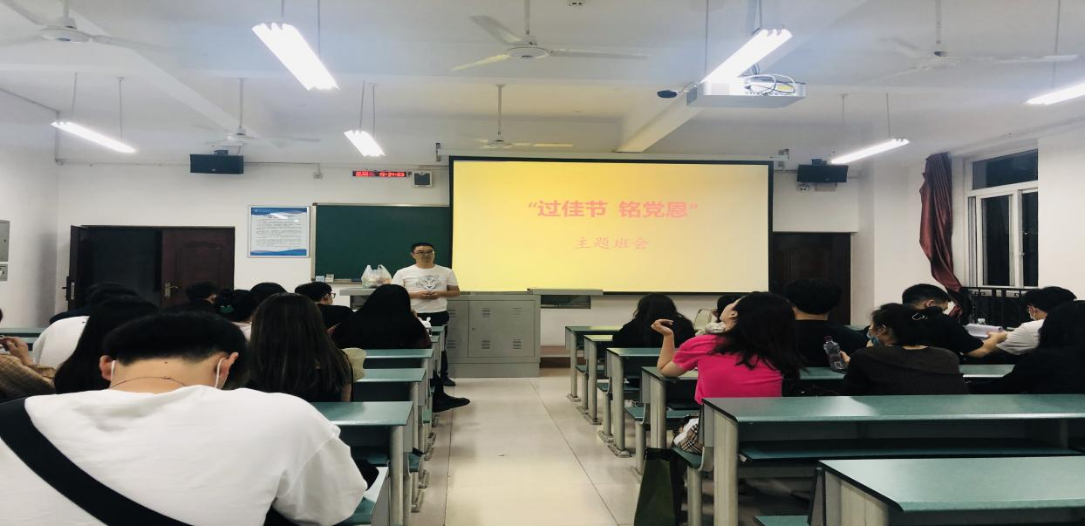 张老师首先祝各位同学中秋节快乐。他说,“每逢佳节倍思亲”,每一个传统节日都是一种继承,都有特定的文化内涵,凝聚着中华民族的智慧和华夏文明。作为当代大学生要弘扬我们的传统文化,继承优良传统,要感恩父母的无私付出,感恩党和国家给我们创造的美好生活,只有懂感恩,懂付出才有好的回报。