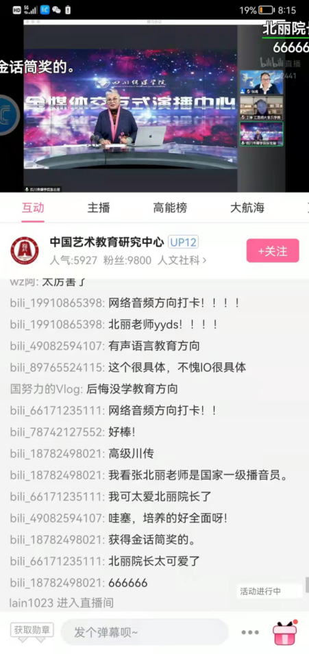 张北丽副院长从我院“专业建设与发展”的四个阶段,人才培养理念、培养过程、产业发展需求方面的“有声语言艺术应用人才”培养探索与实践,学科建设“十四五”规划等不同层面介绍了我院播音专业的专业特色以及发展过程中的一些特点,吸引了众多老师和学生在线收看,获得线上线下广泛好评。