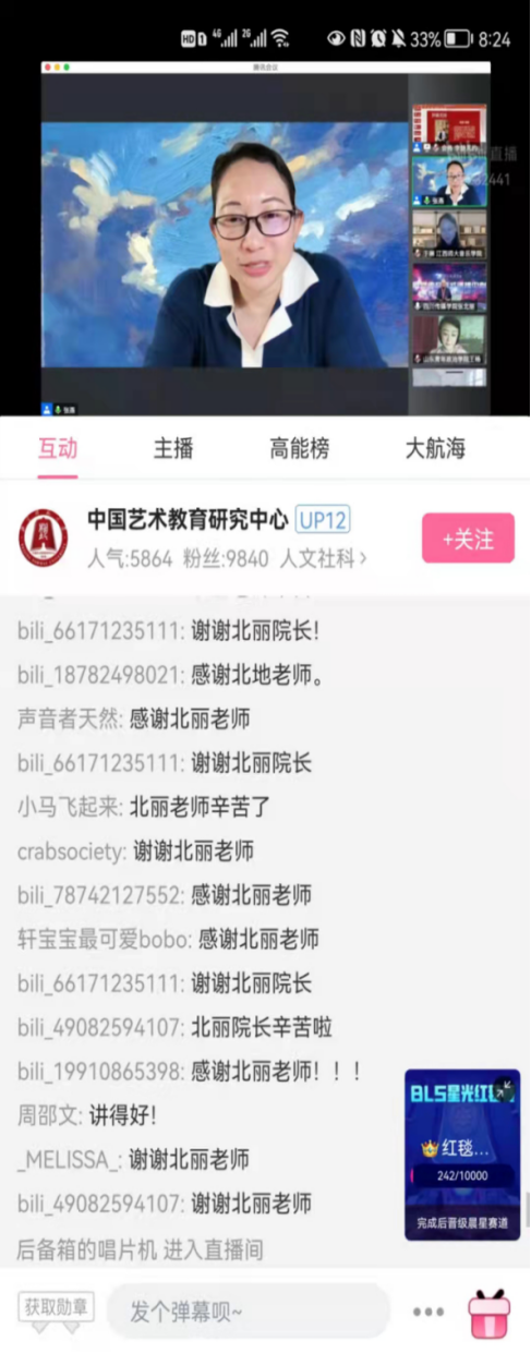 10月24日晚7点,由教育部高校戏剧戏剧与影视学类专业教学指导委员会联合江西师范大学共同主办,由江西师范大学音乐学院、北京师范大学亚洲与华语电影研究中心、北京师范大学中国艺术教育研究中心共同承办的“审美与向善:戏剧与影视学名师大讲堂”系列讲座第四季第八讲在B站和快手上直播进行,我院副院长张北丽教授受邀参加本次线上讲座。我院院长王雷教授及各方向教研室主任在视听中心全媒体交互式演播中心聆听讲座。