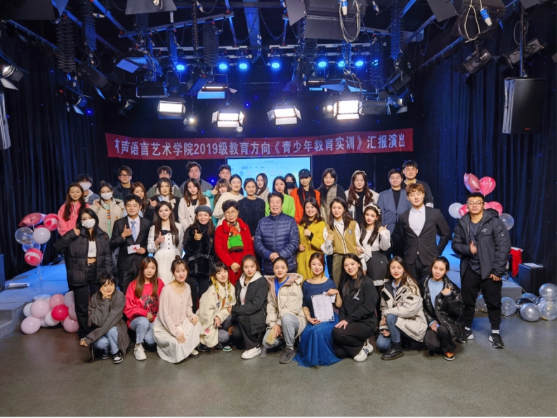 在演出结束后,王雷院长对本次演出给予了很高的评价,并对于播音与主持艺术专业教育方向提出了新的探索思路,围绕如何将有声语言艺术的实践性和应用性进行结合国家政策和社会需求提出了建设性的意见。最后,赵珊珊和肖玉婷老师寄语同学们说:咱们是青少年教育的正规军,未来我们也将成为青少年教育的领军人,大家共同努力!