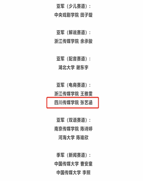 8月28日,第九届江苏广电未来金话筒主持人大赛大学组获奖名单揭晓,我院2022届播音与主持艺术专业毕业生张艺涵荣获电商赛道亚军。