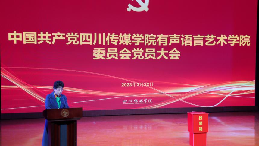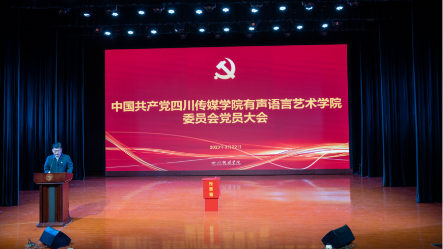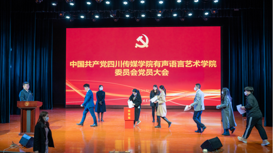 中共四川传媒学院有声语言艺术学院委员会于3月22日晚7时,在学校东区艺术交流中心召开了中共四川传媒学院有声语言艺术学院第一届委员会委员选举大会。