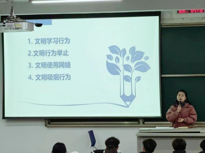 最后,辅导员要求同学们养成良好的文明行为,培养文明学习习惯、文明使用网络习惯、文明言行举止、文明吸烟行为,做有文化有素质的大学生。辅导员强调了校园安全问题,要求所有同学下载安装反诈APP,防止电信网络诈骗,注意寝室用电安全和消防安全,禁止校园内喝酒、翻墙、打架、赌博等违反校纪校规的行为。