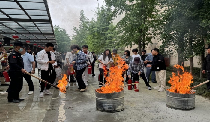 最后,王亚飞科长对干粉灭火器、二氧化碳灭火器、水基型灭火器的使用方法及其注意事项进行了详尽的讲解,并进行了现场演示。在王科长的指导下,师生们纷纷拿起灭火器进行实践操作,这不仅加深了他们对灭火器操作流程的理解,也提高了他们在面对火灾时的实际操作能力,为预防和应对未来可能发生的火灾事故做好了充分准备。