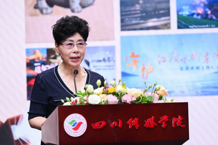 最后我院党委书记芦桂萍向出席本次仪式的各位领导、嘉宾表示了热烈的欢迎和衷心的感谢,同时也对参与本次作品征集的师生们表示诚挚的敬意,她希望师生们能够积极参与,踊跃创作,共同为四川网络视听事业的发展贡献自己的力量。
