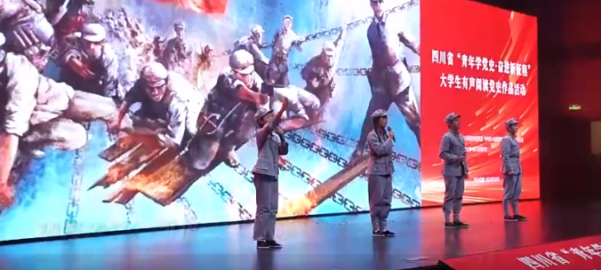 展演活动现场,来自西南石油大学、四川师范大学、四川音乐学院、四川农业大学、四川传媒学院、绵阳师范学院、四川艺术职业学院等高校的同学们深情讲述中国共产党带领四川人民进行革命、建设、改革的生动故事;热情讴歌英雄人物可歌可泣的光辉事迹。川康大地获解放、三线建设、“我党我军政治工作第一人”刘伯坚、中国人民志愿军特级战斗英雄黄继光、中国核潜艇之父彭士禄……一个个鲜活的事例和人物在同学们的生动讲述下,仿佛让大家穿越时空,回到了那段波澜壮阔的光辉岁月,身临其境感受党治蜀兴川砥砺前行的伟大历程。