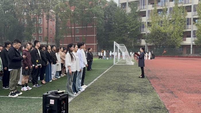 10月14日清晨,在校学工部的组织下,我院党政班子全体成员、全体辅导员、部分教师代表及400余名学生参加了庄严而神圣的升国旗仪式。此次活动不仅是一次爱国教育的深刻实践,更是我院师生凝聚力与向心力的一次生动展现。升旗仪式由党委副书记李思凡主持。