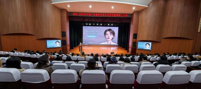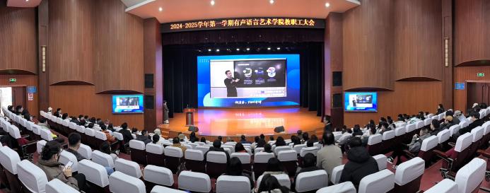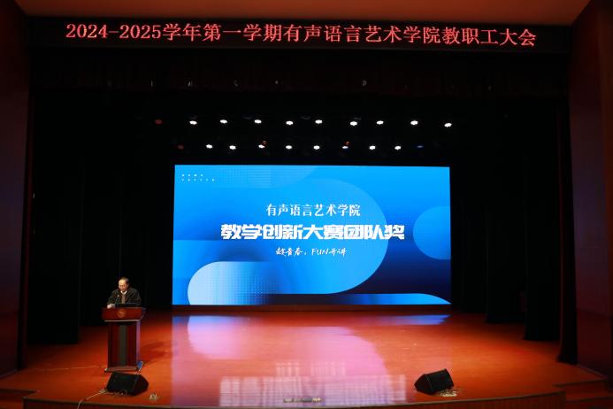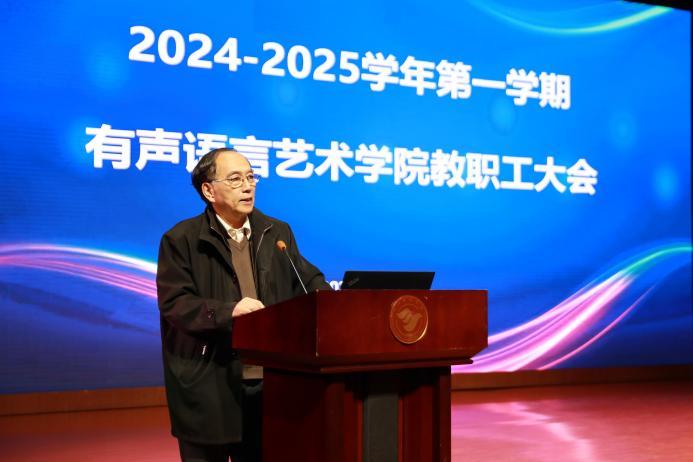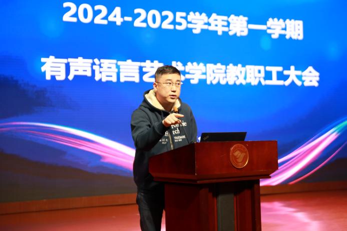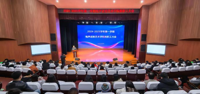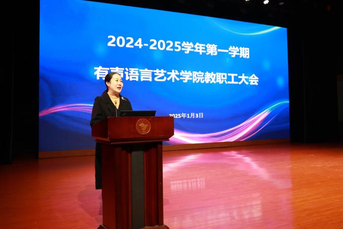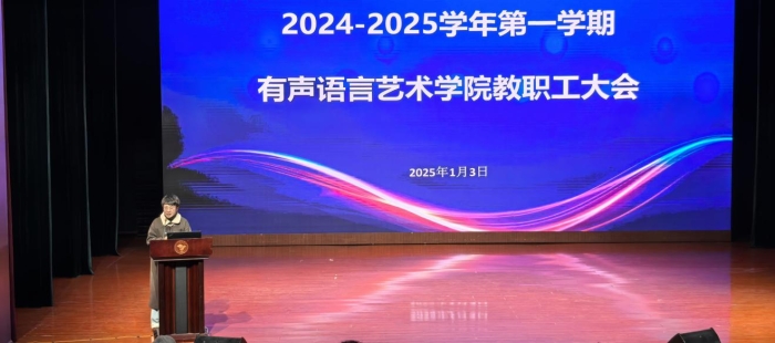 她在讲话中说,2024年有声语言艺术学院坚持以习近平新时代中国特色社会主义思想为指导,深入贯彻落实党的二十大、二十届三中全会精神,认真学习习近平总书记关于教育的重要论述,坚持为党育人、为国育才根本目标,牢牢把握立德树人根本任务,深化党的建设,思想政治教育、学风建设、课程思政都取得了新的成效。
