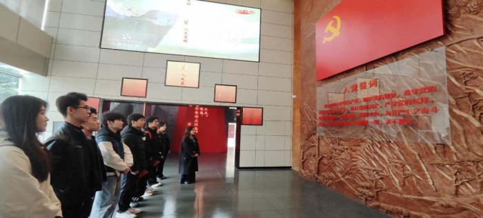 随着活动接近尾声,学生党员后佳奕同志带领全体师生重温入党誓词。铿锵誓言回荡在陵园上空,传递着新时代青年党员赓续红色血脉、勇担时代使命的坚定信念。参与活动的预备党员安国滔表示:“烈士们的牺牲精神让我深受震撼。作为传媒学子,我们更应讲好红色故事,用声音传递信仰的力量。”