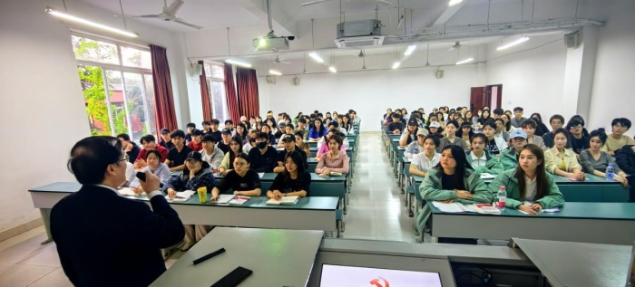 近日,在A9教学楼411教室,我院组织第16期入党积极分子培训班,校党委书记何建平以《深入贯彻中央八项规定精神和党的二十大学习教育》为题,对“中央八项规定精神”和党的二十大报告的核心要义进行宣讲。学院党委书记安君、副书记李思凡、副书记张红权、纪检委员以及各党支部骨干成员、教师党员代表和百余名入党积极分子,共同学习了这堂党课。