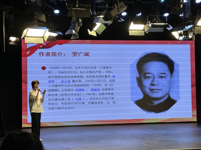 2024级7班包悦分享的书籍为《红岩》,是作家罗广斌 、杨益言根据自己在国共第二次内战时期国统区监狱渣滓洞和白公馆监狱的真实经历与见闻而创作,描写人民解放军进军大西南的形势下,重庆的国民党当局疯狂镇压共产党领导的地下革命斗争,充分显示了共产党人视死如归的大无畏英雄气概。