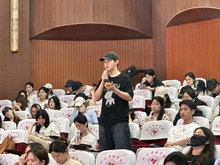 郑三川学长分享了他从萌生创业念头、组建团队,直至参与众多创业竞赛并成功实施项目的整个过程。从最初踏入社会时的不断尝试与挫折,到如今取得的成绩,都离不开专业学习。郑三川学长认真给大家讲解了如何将专业技能与创新创业相融合,利用其在有声语言领域的专业优势来塑造个人品牌。通过新媒体将流量垂直变现,播音专业扎实的综合能力使他能够精准掌握婚礼主持的情感深度,培养共情力。尽管创业之路充满挑战,但凭借对有声语言艺术的热爱以及对市场需求敏锐的洞察力,实现了创业的梦想,为同学们未来创新创业提供了可借鉴的经验。