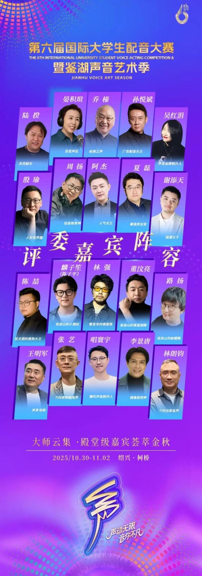 组委会邀请乔臻、孙悦斌等“老中青”三代配音艺术家组成评审团,从角色贴合度、情感传递力、声音创造力等维度进行专业评审,同时同步举办“光影声宴”沉浸式舞台剧、声创见面会等配套活动,为青年学子搭建了“交流、学习、展示”的国际化平台。