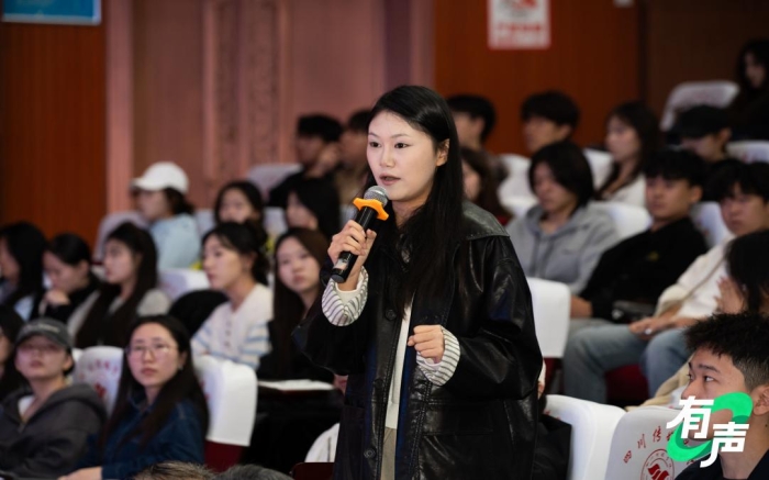 面对部分学生可能存在的职业迷茫,彭坤积极鼓励大家坚定职业信心。她提出了“语言是拥有力量的‘疗愈手段’”这一独特见解,认为优秀的语言表达不仅是信息传递的载体,更能成为直抵人心的强大力量,创造积极的社会价值。她还幽默地表示:“当你找到用声音与他人深度连接的感觉,那无疑是‘人生开挂’的开始。”生动的表述既缓解了学子的焦虑,也让大家对播音主持职业的价值有了更深层次的认知。