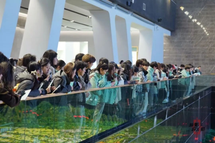 12月6日,这堂“行走的思政课”迎来了规模最大的实践教学模块。我院播音主持艺术与新媒体艺术两个专业的百名大一新生,受邀集体走进成都市规划馆,开展沉浸式学习。