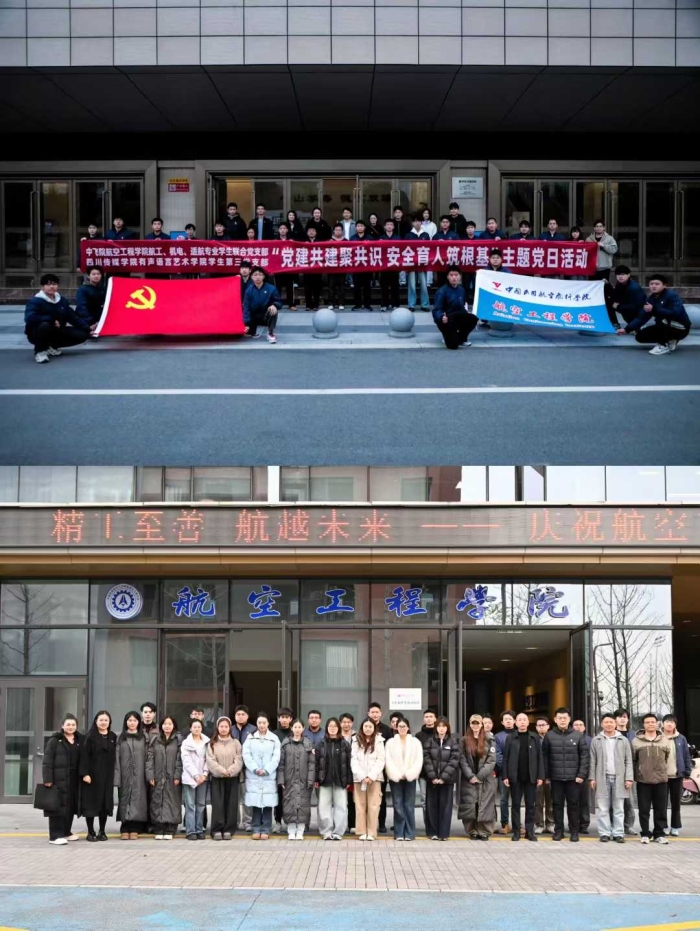为深入学习贯彻习近平新时代中国特色社会主义思想和党的二十届四中全会精神,落实“五育并举”育人理念,深化校际党建协作与专业融合,2025年12月23日下午,四川传媒学院有声语言艺术学院学生第三党支部赴中国民用航空飞行学院航空工程学院航工、机电、适航专业学生联合党支部,以“党建共建聚共识 安全育人筑根基”为主题,举办联合主题党日活动。两校党支部书记、委员及学生代表共30余人齐聚一堂,在思想碰撞中凝聚共识,在实地观摩中深化协作,共同谱写跨校协同育人新篇章。